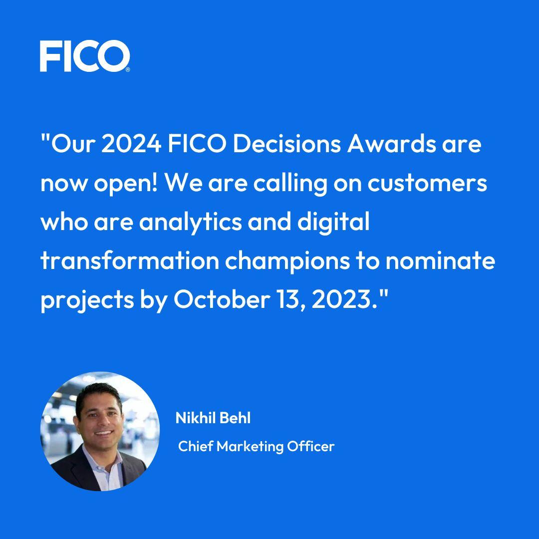 I am excited to announce that our 2024 FICO Decisions Awards are now open!