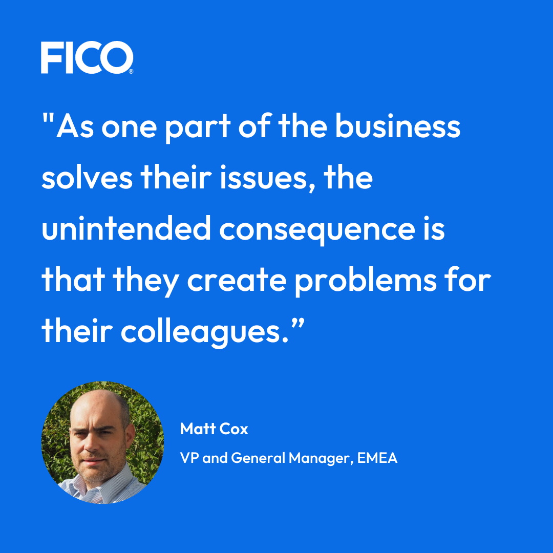Breaking down these siloes and fostering a more collaborative and communicative culture typically requires a concerted effort from leadership, changes in organizational structure, and a commitment to promoting cross-functional teamwork and a shared organizational mission. A recent FICO poll of senior executives tasked with preventing application fraud found that 85% of them put a high priority on technology that supports real-time fraud detection integrated with credit originations.