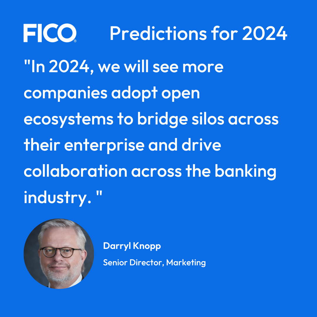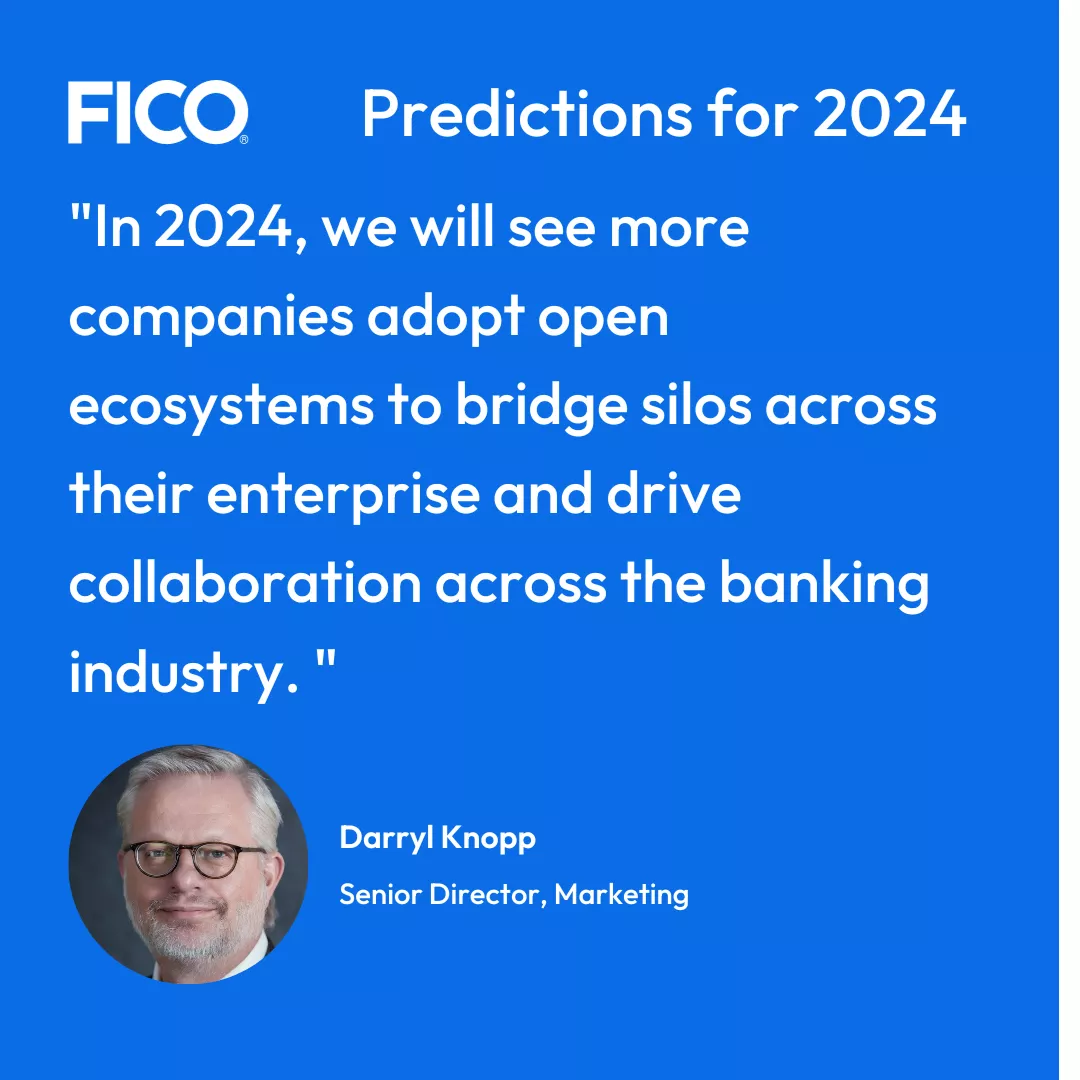 In 2024, we will see more companies adopt open ecosystems to bridge silos across their enterprise and drive collaboration across the banking industry. These ecosystems will be based on applied intelligence platforms that use AI and APIs to unify decisioning processes across the organization. This type of platform software acts like an organization’s brain and central nervous system, providing clarity across all the decisions a business makes for their customers and fueling the connectedness that’s needed for integrated customer experiences.