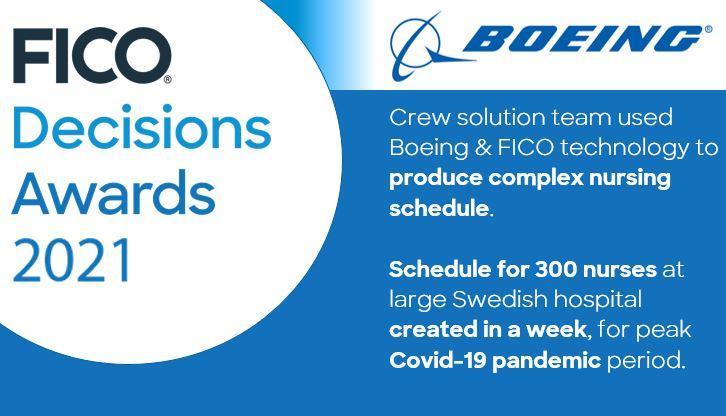 For its achievements, Boeing’s crew solution team has won the 2021 FICO® Decisions Award for AI, machine learning & optimization.