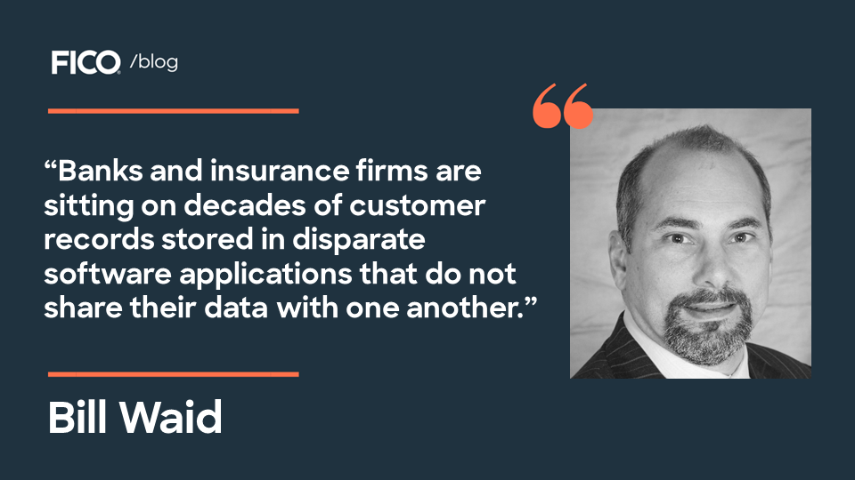 Traditional financial services and insurance firms are sitting on decades of valuable customer records that are typically stored in disparate software applications that do not share their data with one another. As a result, banking and insurance firms cannot rely on their data and analytics to accurately foresee impending customer needs; thus, they miss out on valuable strategy and marketing opportunities to cross-sell and up-sell their financial products to customers… even though those customers will actually need those very products at some point in their financial lives.