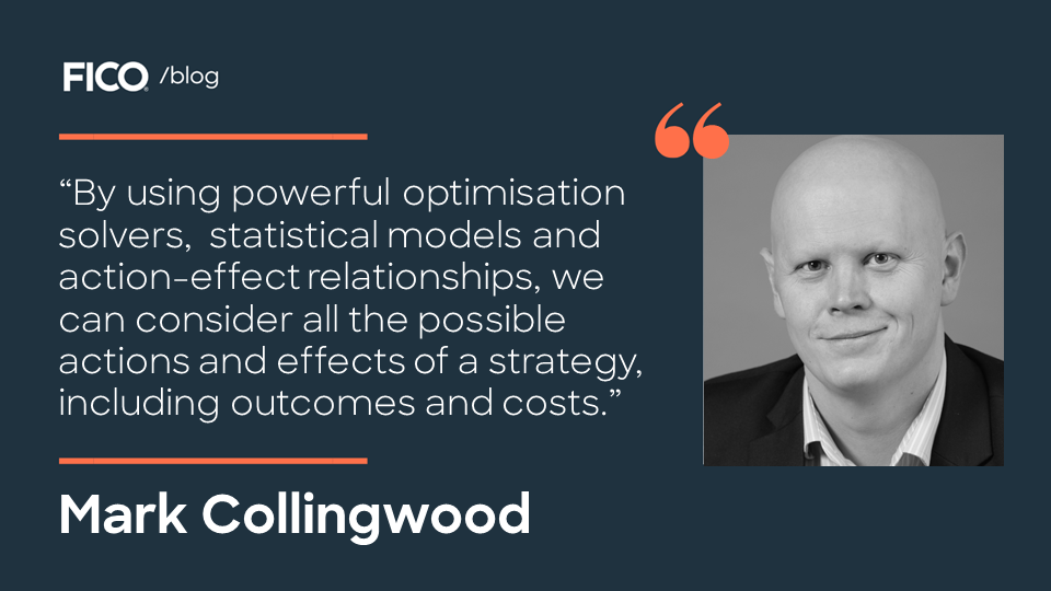 We can evaluate all the routes to our destination before we set off. Then, by overlaying business and operational constraints such as cost, affordability criteria, responsible collections practices and overarching business goals — such as maximise collections amount while minimising customer attrition or maintaining operation headcount —we can determine a collective set of actions across all customers that maximise our goals.