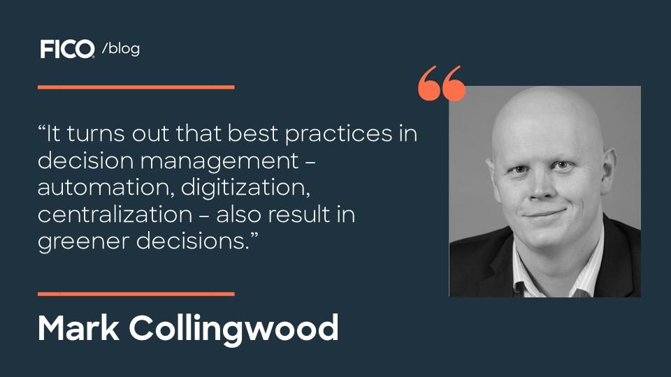 It turns out that best practices in decision management – automation, digitization, centralization – also result in greener decisions. For an example, look at European debt management company Hoist Finance.