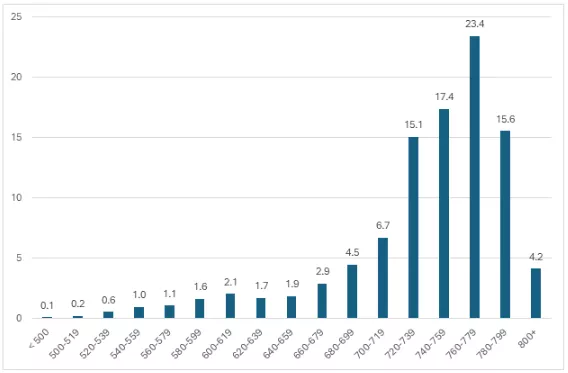 Figure 1: April 2023 FICO® Score 8 distribution of individuals with total account balances = 0