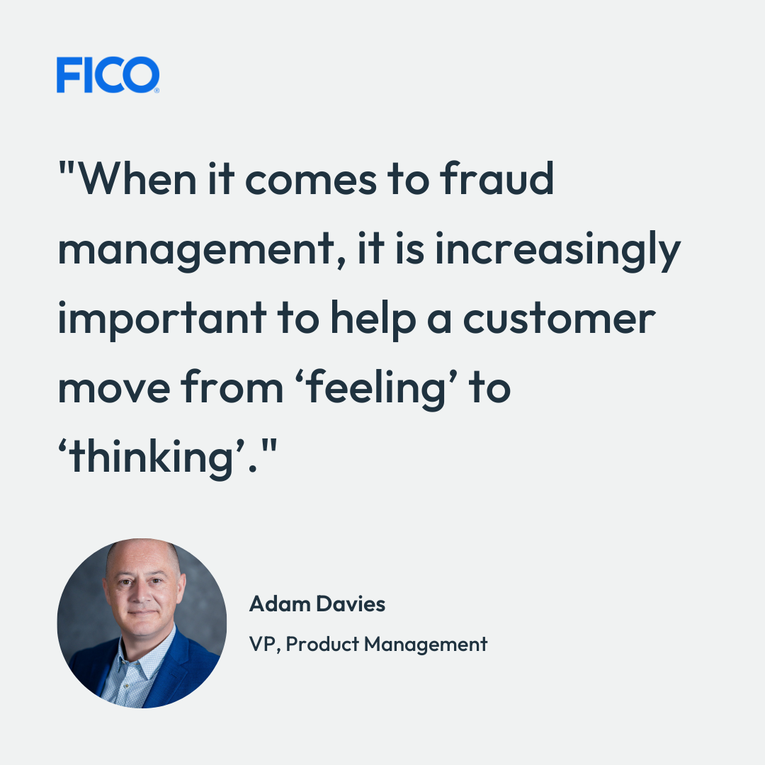 When it comes to fraud management, it is increasingly important to help a customer move from “feeling” to “thinking.” Scams tend to prey on victims’ emotions. Asking consumers to stop and think a bit before sending a real-time payment, for example, is good practice. FICO’s survey data shows 65% of consumers worldwide want more warnings about emerging scams when they are making real-time payments.