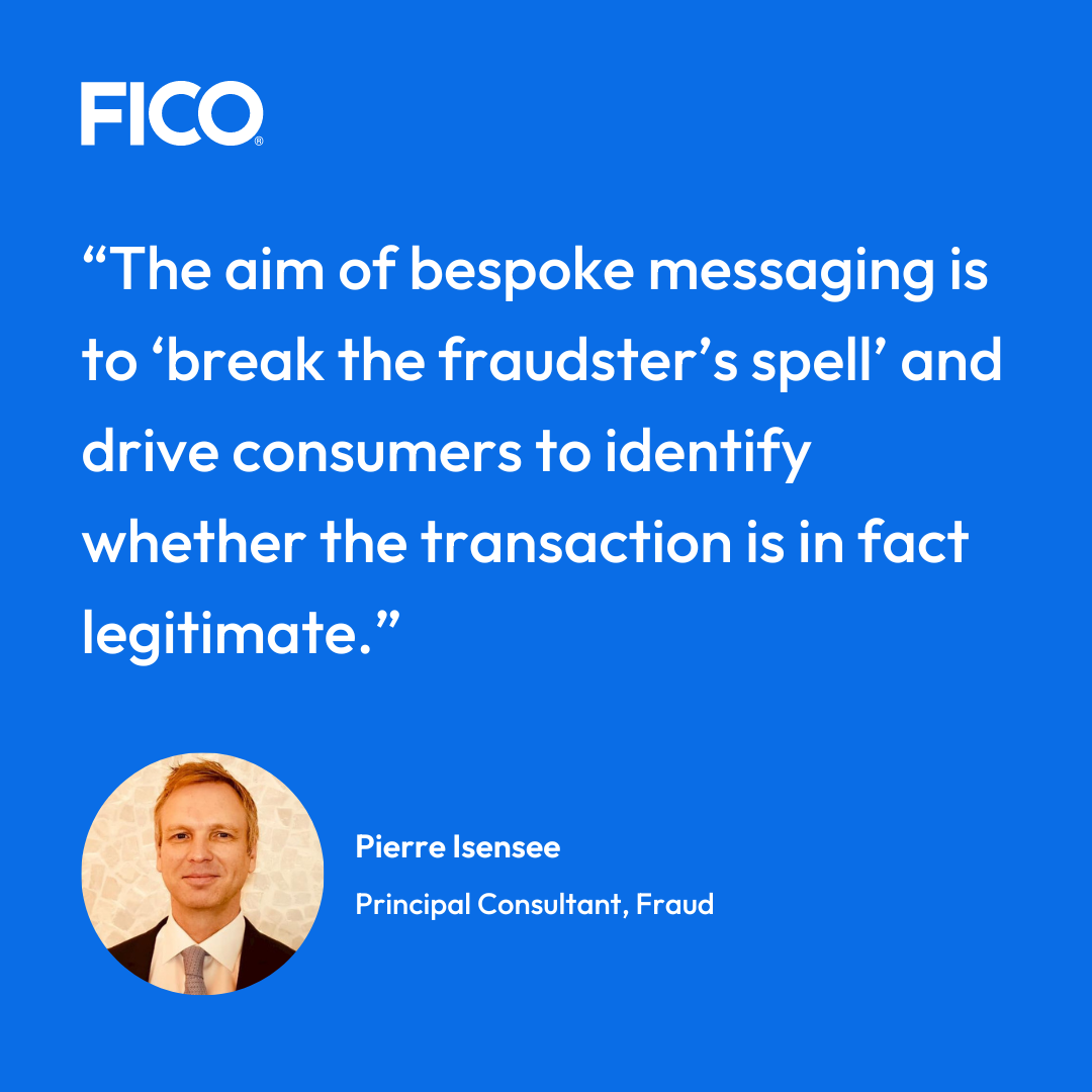 - “Breaking the spell of the fraudster” through more targeted, personalized messaging