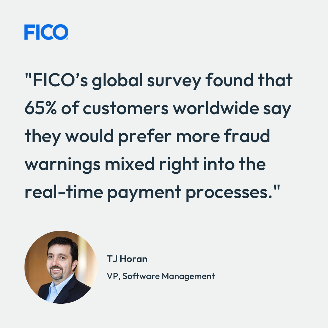 Banks can’t control how regulators will rule on reimbursement, but common sense says that customers don’t want to be scammed even if they will be reimbursed. The data backs this up: FICO’s global survey on real-time payment scams found that 65% of customers worldwide say they would prefer more warnings mixed right into the real-time payment processes.