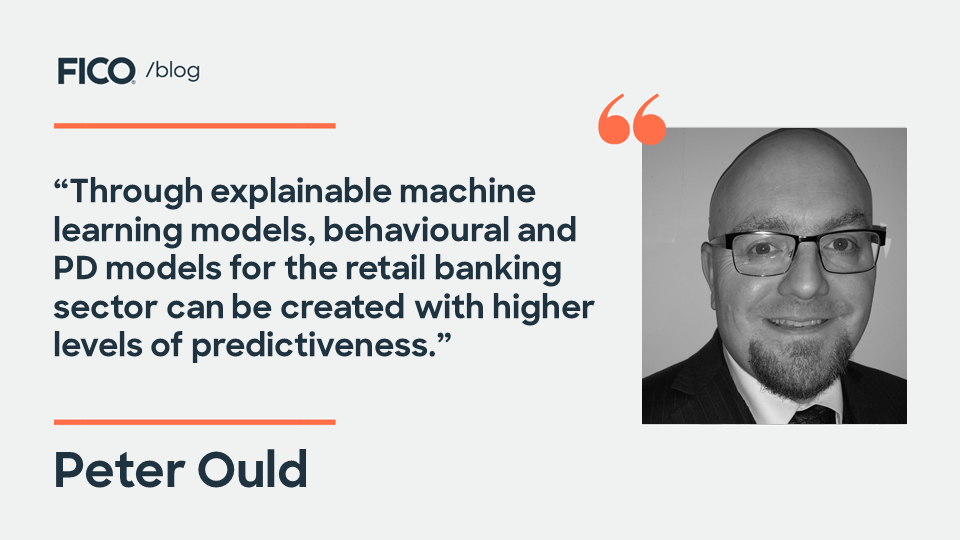 Here at FICO we’ve been exploring for almost a decade the use of explainability in machine learning through our xAI technology (check out Scott Zoldi’s post on Using Machine Learning in Credit Risk Models) which is now embedded in FICO Platform. Through our explainable machine learning models, behavioural and PD models for the retail banking sector can be created that provide higher levels of predictiveness coupled with explainable outcomes and reason codes.