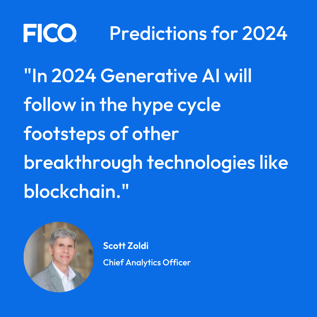 Where will we land in 2024? Will we enter into a new, calmer era of AI? I sure hope so. Follow me on LinkedIn and on X @ScottZoldi to keep up with my latest thoughts on Auditable AI, AI innovation and Responsible AI.