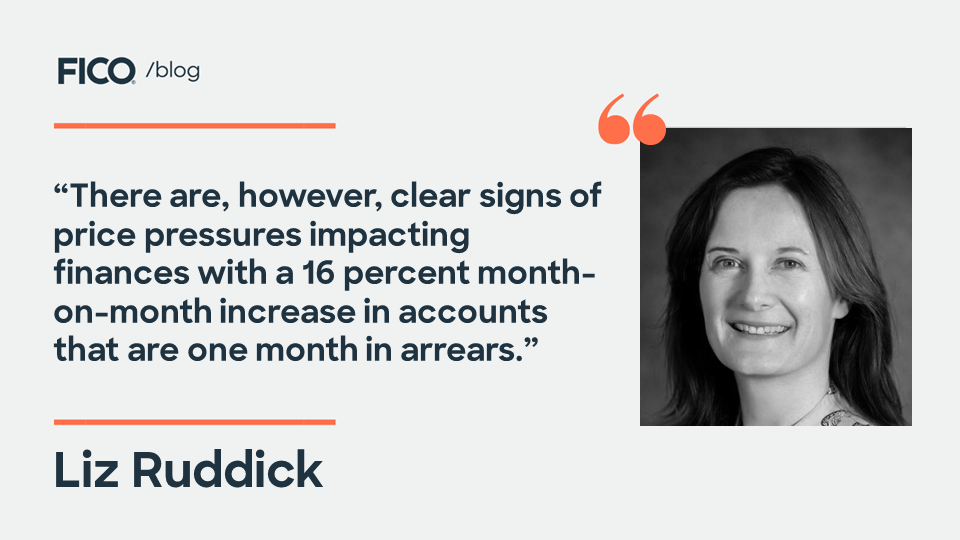There are, however, clear signs of price pressures impacting finances with a 16 percent month-on-month increase in accounts that are one month in arrears. Accounts two months in arrears are also increasing, by over 6 percent month-on-month. However, the percentage of accounts with three missed payments has dropped – by over 7 percent month-on-month.