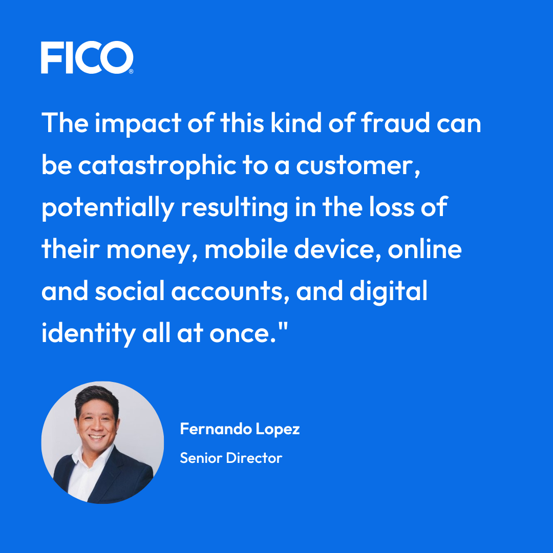 All these schemes can tie back to identity thefts and account takeover scams. Crooks steal identity information to later impersonate a customer, gain control of their mobile service, reset passwords on banking and shopping accounts, and commit crimes. The impact of this kind of fraud can be catastrophic to a customer, potentially resulting in the loss of their money, mobile device, online and social accounts, and digital identity all at once.