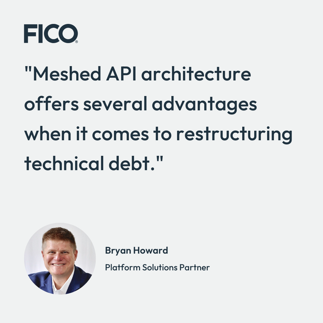 FICO Platform is a modular set of applied intelligence capabilities that can be folded into a meshed API architecture offering precision tools for reducing technical debt. Applied Intelligence involves automating complex tasks and processes to reduce the time and effort needed to complete work, while a meshed API architecture allows organizations to streamline integration of disparate applications and systems. When combined, these two approaches can help businesses avoid costly rework, improve execution speed, and reduce the overall burden of technical debt.